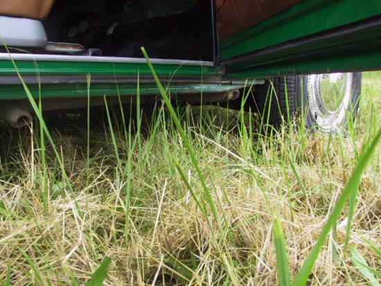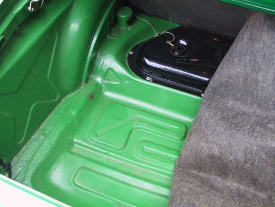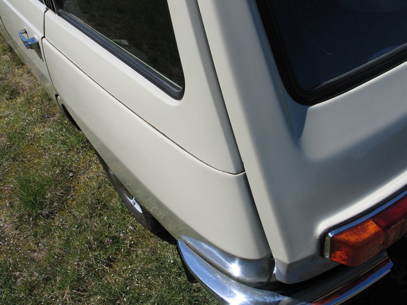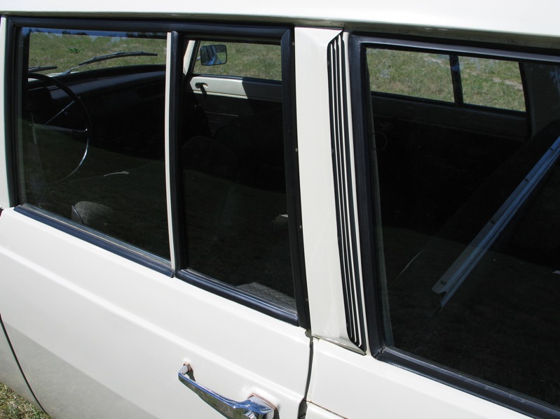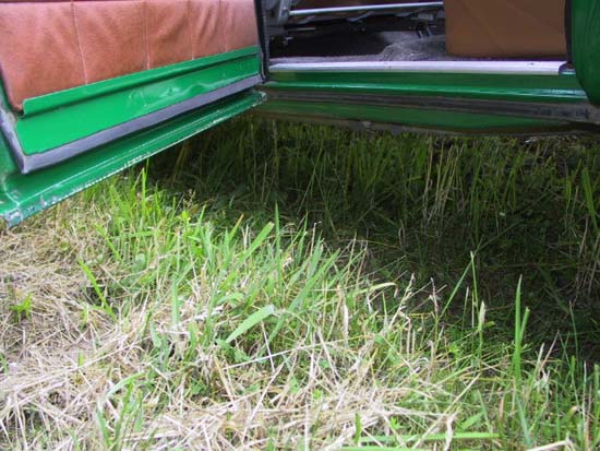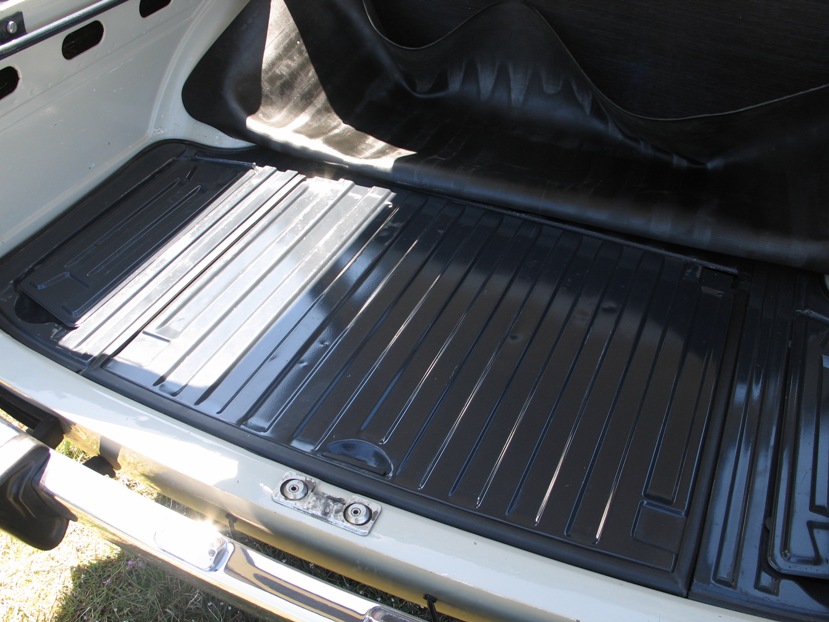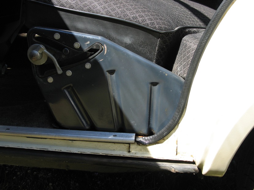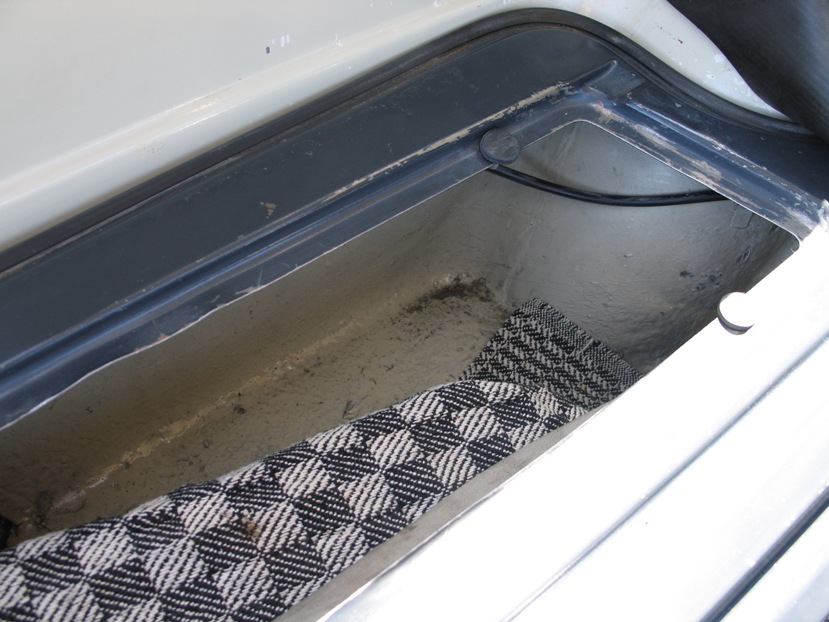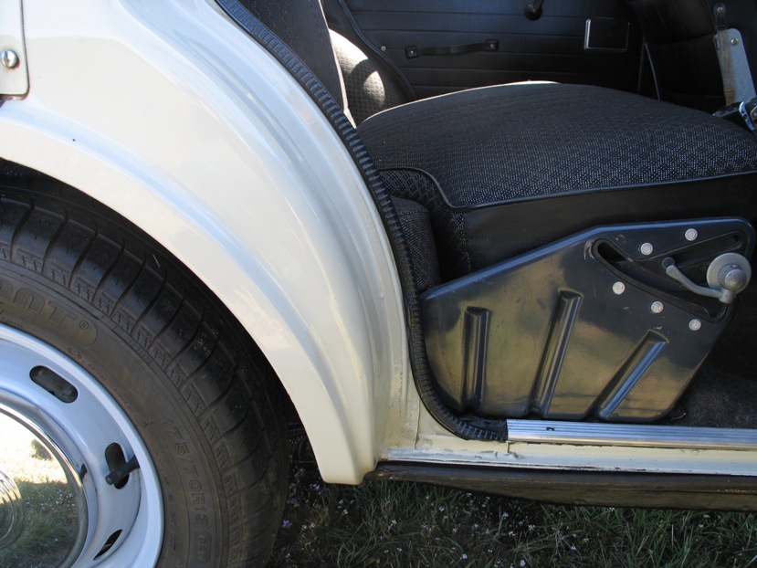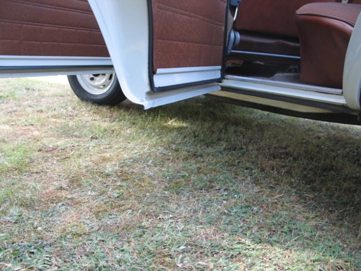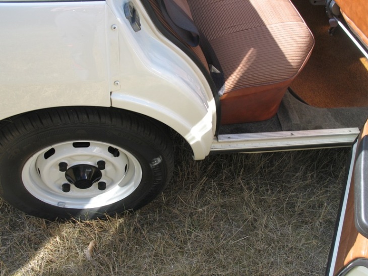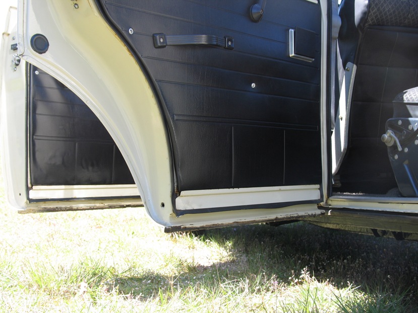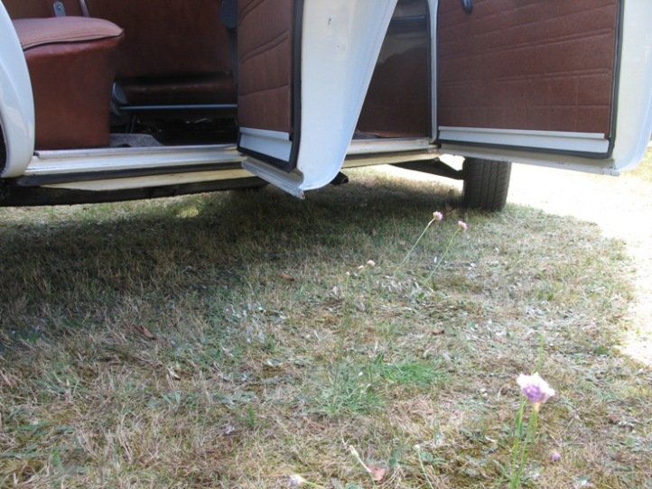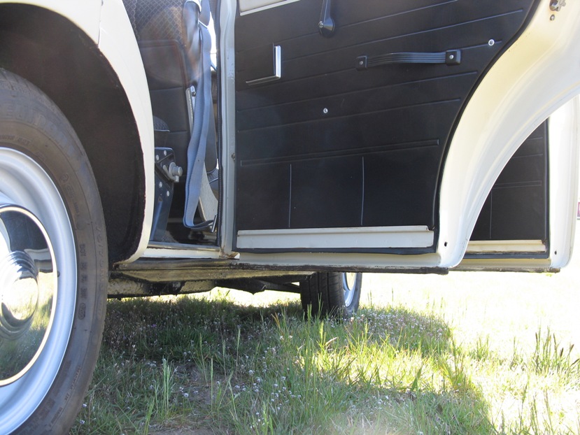 | Chromanbauteile sind ringsum alle in einem guten bis sehr guten Zustand (Chromecke vorn links hat eine seitliche Kratzspur mit Delle), Chrombedampfung der Blinkleuchten/ Heckleuchten ebenso sehr gut erhalten! Türpappen alle recht ordentlich gerade und nicht wellig, Einstiege sauber sowie ohne Gammel! Alte angepunktete Blechhaltekante für den unteren Dichtgummi am Schweller ist vorhanden und im guten Zustand! Wie Eingangs erwähnt, alles unangetastet original! Bodenblech im Innenraum unter den Matten ohne Rost, wurde schon früher mit Konserviert (denke das es mit Ubotex gestrichen wurde). |