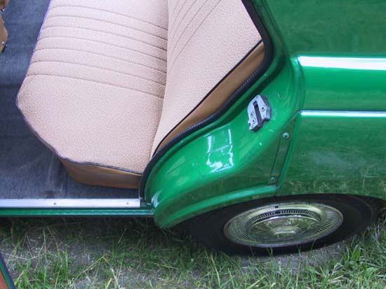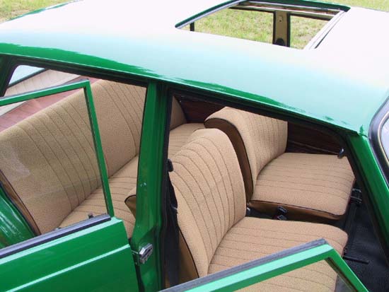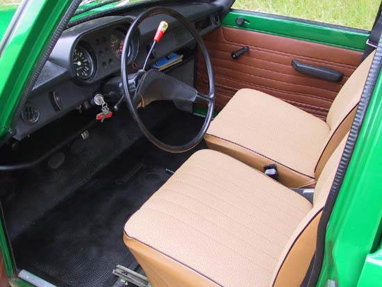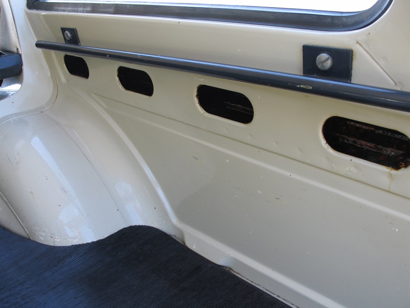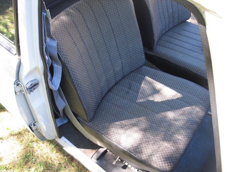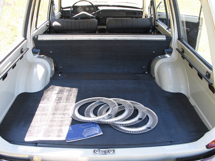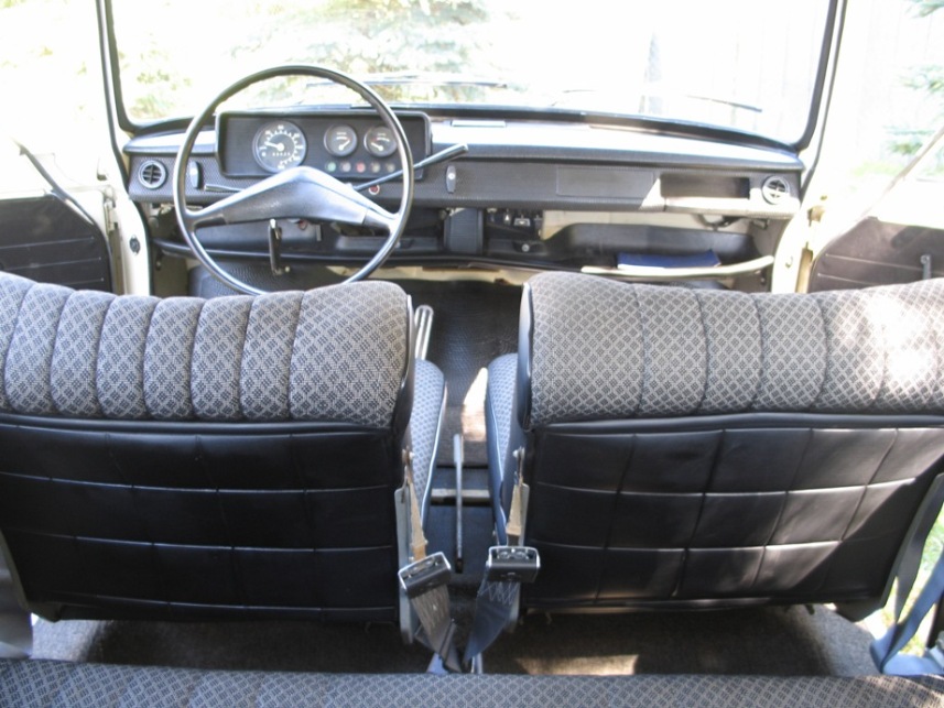 | Im Innenraum geht es ebenso absolut original zu, selbst die alten grauen Doblina Gurte welche man an die Sitze hängt sind noch drinnen.... Himmel ist top gepflegt, keine Risse, schön weiss und natürlich die alte gelochte Version! Da der Wartburg super konserviert wurde, gibt es an den neuralgischen Stellen der Tourist- Hinterteile keine Durchrostungen, Hohlräume und Kofferraumboden sowie Seitenscheibeneinfassung sind einwandfrei! |