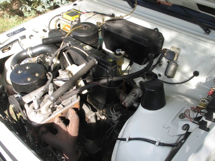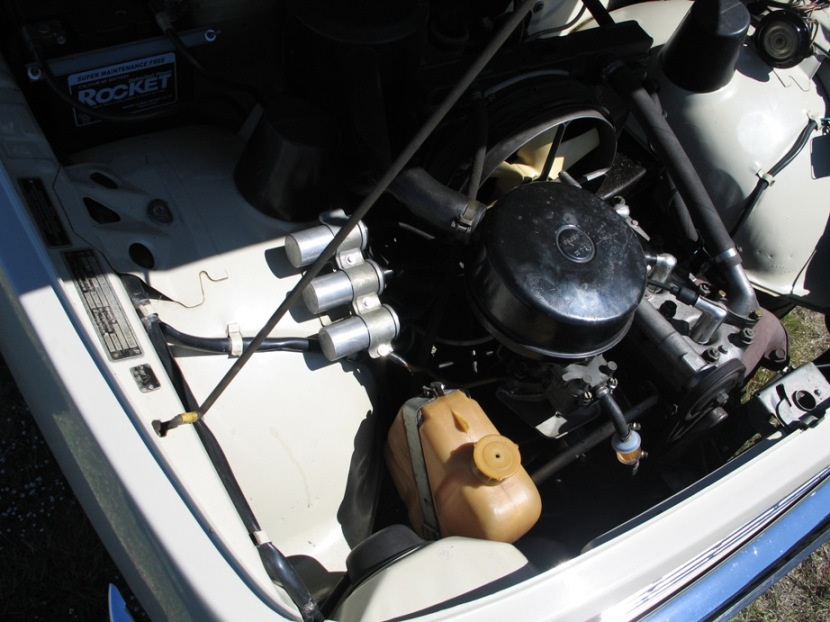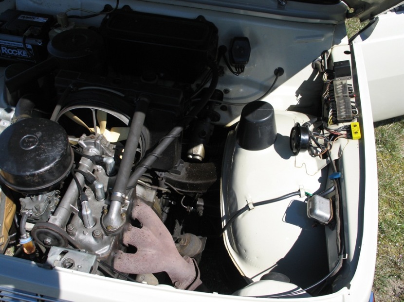 Zylinderkopf, alter Wischermotor, Kühler von 1972.... Der Rumpfmotor wurde ca 1988 getauscht gegen einen neuen, dies ist lt. Erstbesitzerin von welcher wir den Wagen haben mündlich überliefert! Der Wartburg wurde im Februar 1993 abgemeldet und stand viele Jahre in der Garage! Seit 2004 ist der Wartburg in unserem Besitz, abgekauft von der Erstbesitzerin stand er bei uns immer als Ausstellungsfahrzeug und nun die letzten Jahre abgedeckt und zugeparkt in der Ecke! Am Wartburg wurde die komplette Bremsanlage gegen eine neue getauscht (RBZ, HBZ, Schläuche, Beläge, alles neue DDR Lagerware!). Vergaser und Zündung sowie Kühlsystem überarbeitet, bzw. eingestellt! Reifen hatten wir schon früher erneuert und sind kaum gefahren, neuzeitliche Pneumant der Grösse 175/70 R13 passend zum DDR Auto! Batterie neu. |