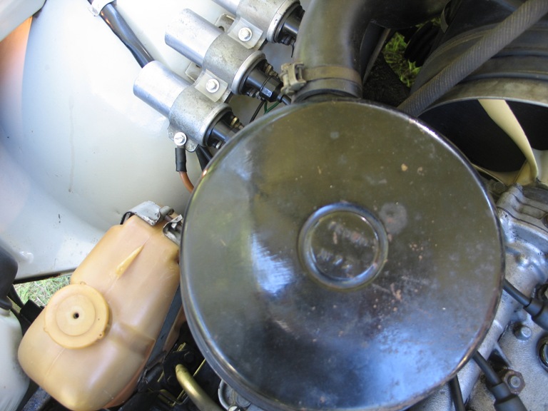 Luftfiltertopf mit Einprägung aus dem 4.Quartal 72`, Gussriemenscheibe am
