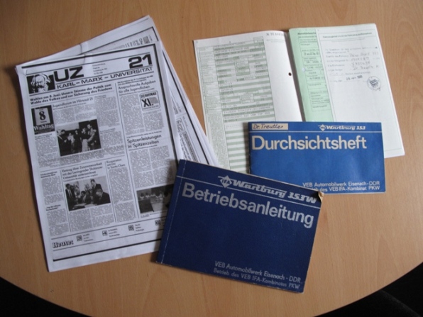 Dazu "Genex"- Ausführung mit Knüppelschaltung, Scheibenantenne und Radio aus dem "Intershop"..... Anbauteile neu in schwarz beschichtet, Gürtellinie aussen professionell lackiert, Felgen sandgestrahlt und ebenso beschichtet, Technik komplett überarbeitet (Bremse, Kühlung, Kugelköpfe am Fahrwerk, Zündung.....) sowie 5 neue Reifen! Es gibt keinen Rost (konserviert mit Fluid Film), Lack tadellos ohne Kratzer und Beulen. Der Wagen ist sofort fahrbereit, kein Wartungsstau!! Der Wartburg hat nur einen Vorbesitzer und war in Leipzig beheimatet. Besitzer des Fahrzeuges hatte einen Doktortitel und war stellvertretender Direktor des Medizinisch-Poliklinischen Institutes in Leipzig..... |